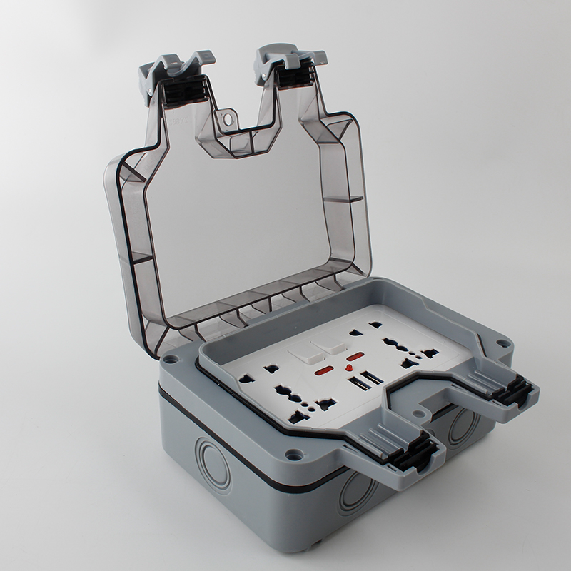 IP66 BG-1 Series Waterproof Double switch socket box - Grey